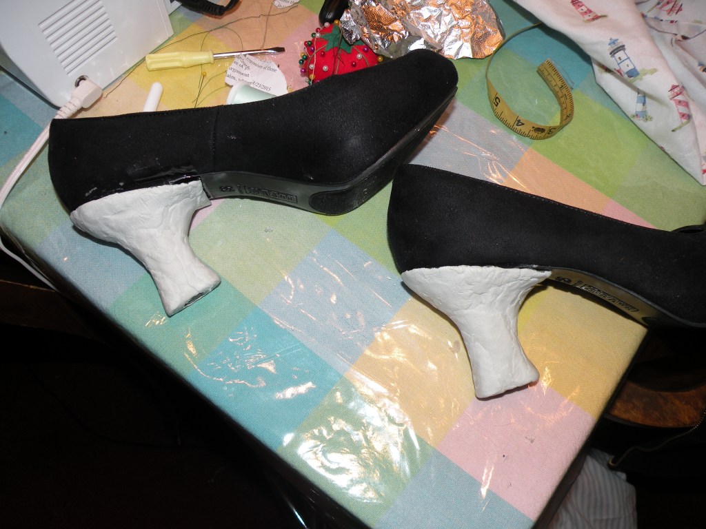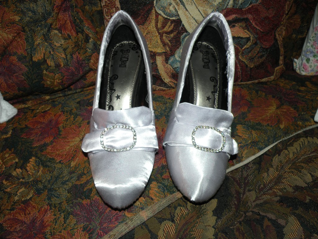 Of course, I need accessories to go along with my dresses or they wouldn’t be complete. When I need shoes, I try to buy ones that look historically accurate, but sometimes I need to embellish them. This pair I did a complete makeover of: