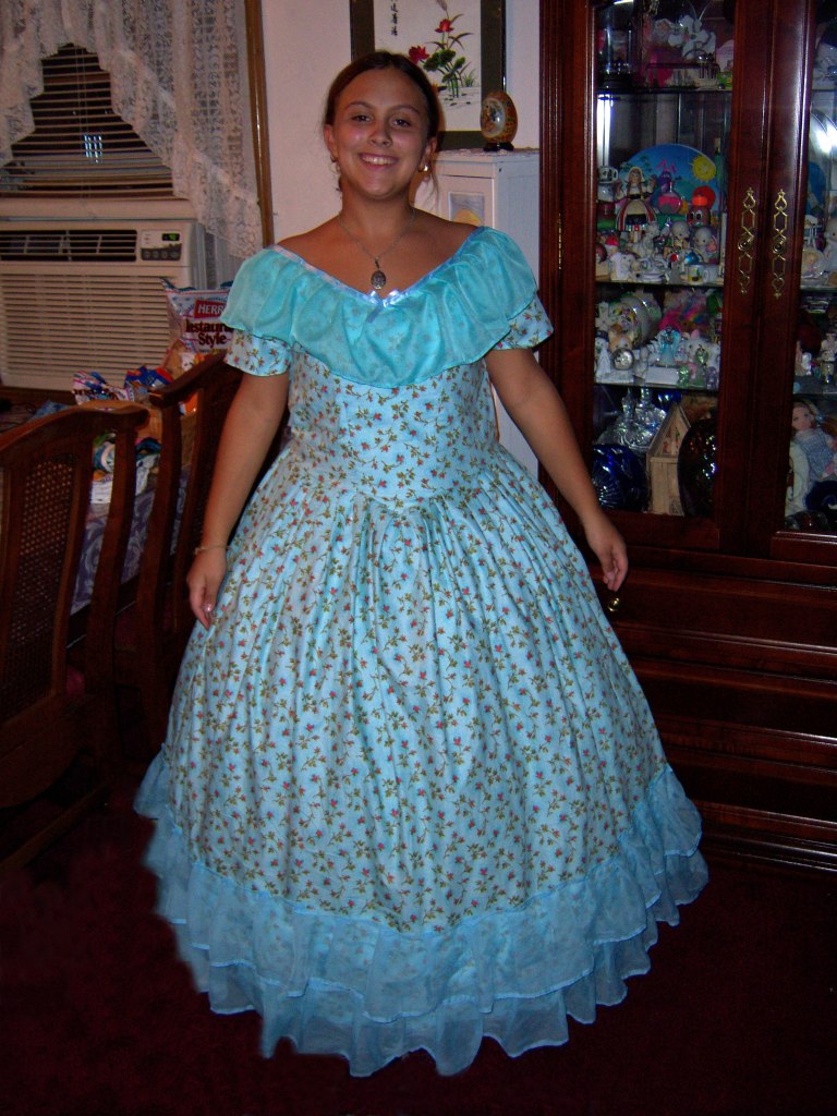 So here was twelve year old me, never having sewn a costume before, looking through the material at JoAnn Fabrics. I got two patterns that were for 18th century dresses and got to work cutting them. Now the problem was that I didn’t know how patterns worked and kind of skimmed through the directions. So this lead to a lot of poorly made, ill fitting garments at the start my adventures into costuming. I also dabbled into Victorian/Edwardian children’s garments, inspired by the American Girl dolls and especially the movie Samantha: An American Girl Holiday (2004).