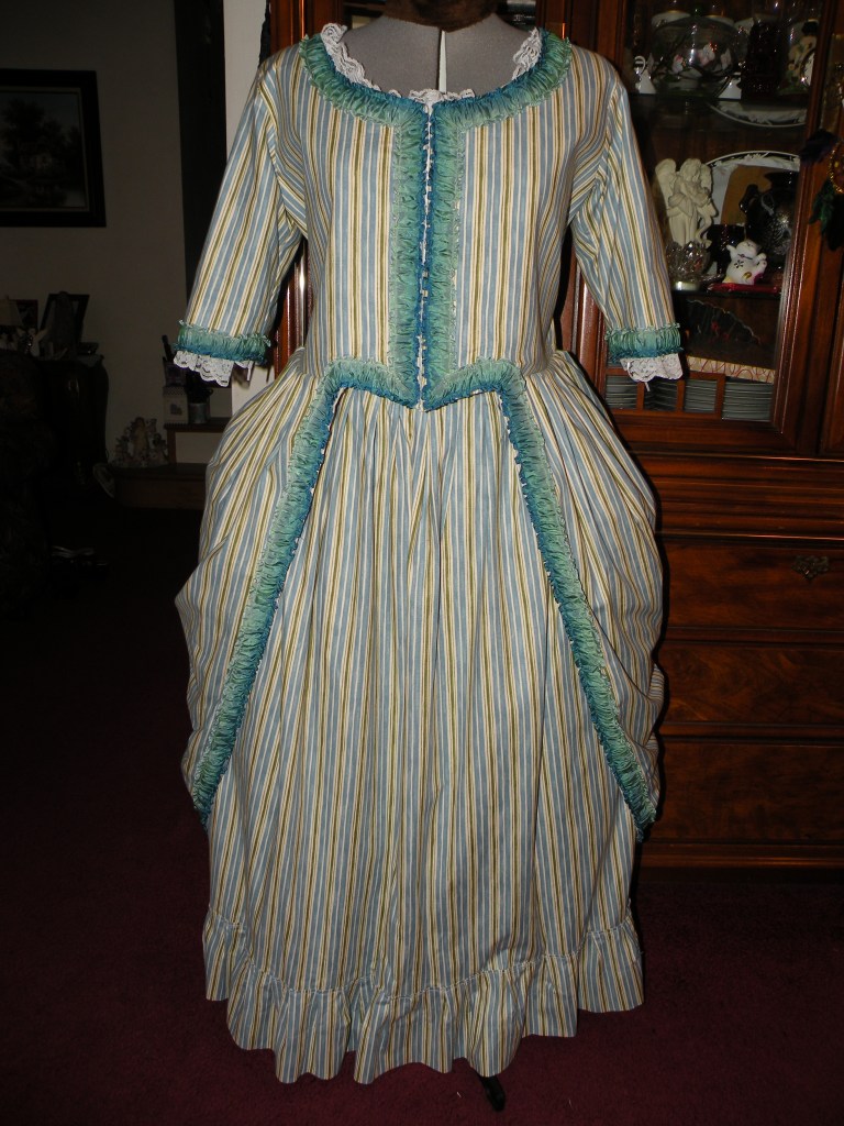 My love of costuming caused me to pursue fashion as my major in college. I had the opportunity to take a historic costume course which I loved. For my internship, I worked at the Morris Museum where I was able to work with historic costumes. I catalogued and conserved them and prepared them for display. At the time I worked there, we were preparing an exhibit on Prohibition which featured dresses from the 1920s. In my last year of college, I worked in my school’s costume collection where I preformed work similar to what I did in the museum. I have also tried my hand at theater costuming where my background in historic dress comes in handy.
